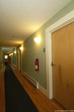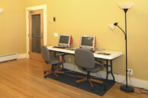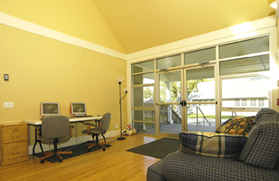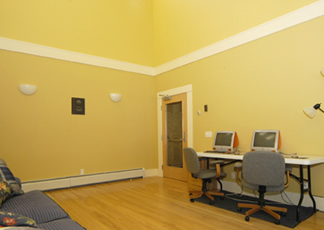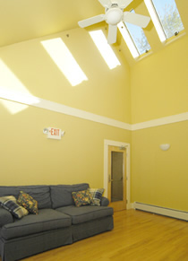 access from the adjacent glass-walled main entry porch and uses a row