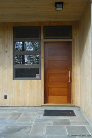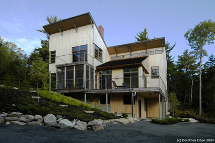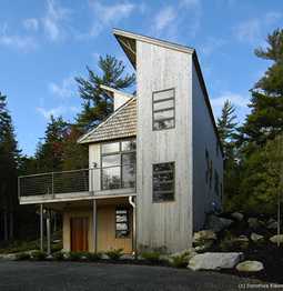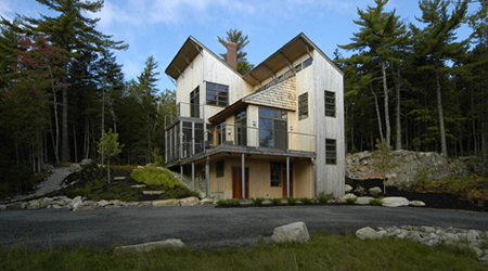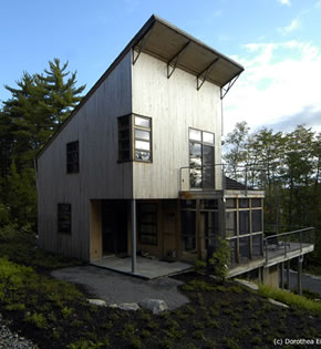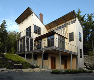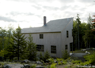 adaptation with exposed connections; thick, hand-split red cedar shakes,